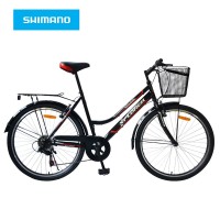 Shimano menjač sa 6 brzina će vožnju pretvoriti u zabavu bez puno napora. Bogata dodatna opema, kao što je žičana korpa, nosač tereta, branici, štitnik lanca, će Vam dobro doći u mnogim situacijama. Ojačani "double wall" točkovi omogićiće Vam lako i bezbedno prelaženje ivičnjaka.6 brzina, čelični ctb ram 19", dimenzija točka 26", obruč-dvozidni, zadnji menjač-Shimano TZ 50, kruta vila, V-brake kočnice, branici, nosač tereta, crna korpa