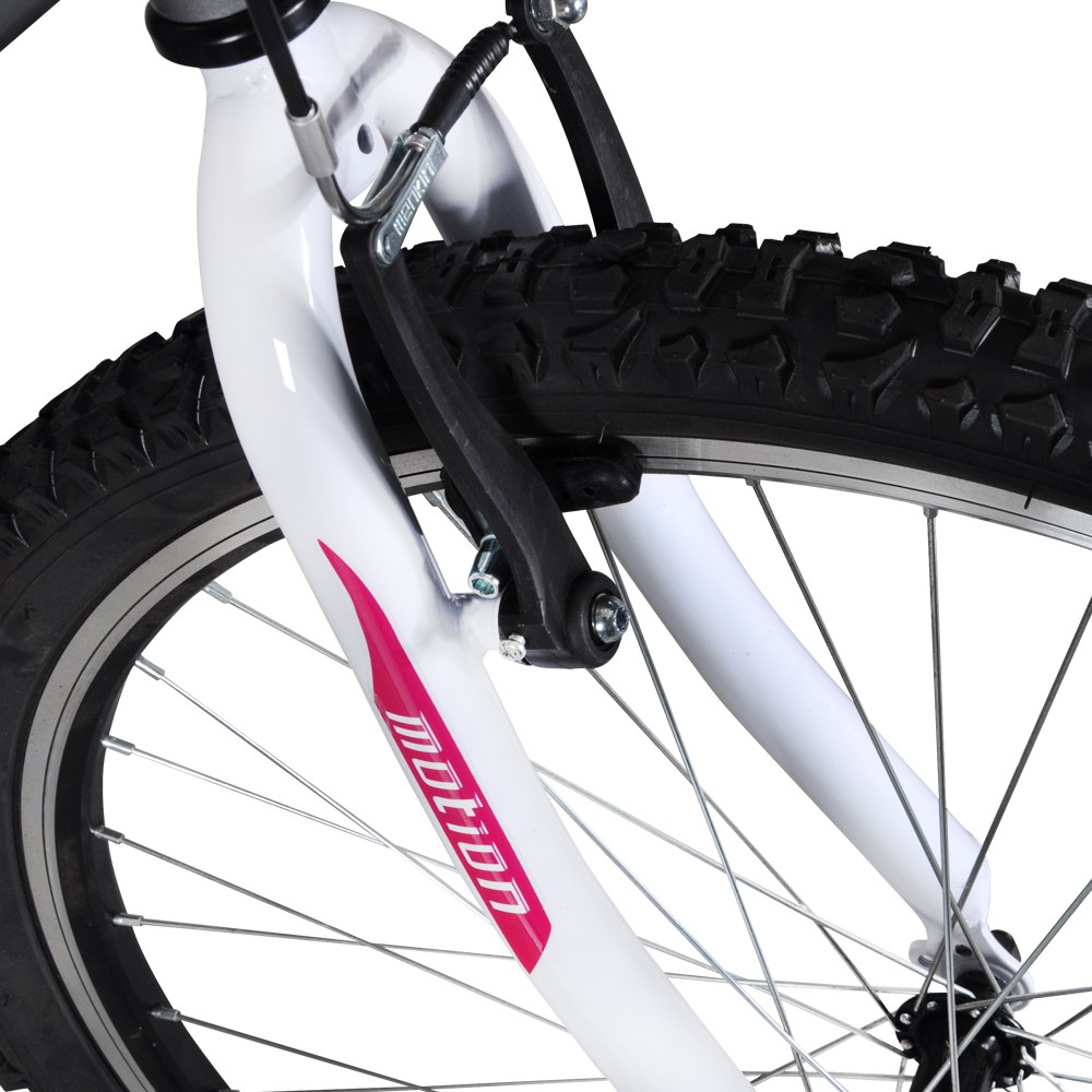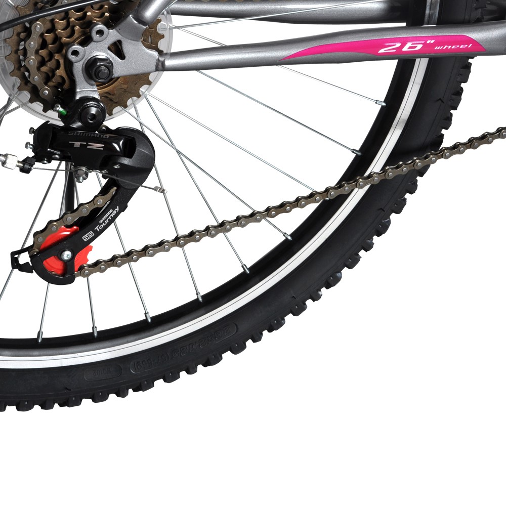 Ovaj ženski MTB atraktivnog dizajna je idealan za sve devojke visine od 158cm do 172cm. Blago zakrivljena gornja cev rama olakšava pokretanje i silaženje sa bicikla. Sa ojačanim "double wall" točkovima od 26" i veličinom rama od 17" dugo godina će biti pouzdan prijatelj u svim uslovima vožnje. Zadnji Shimano menjač garantuje laku upotrebu i prevazilaženje svih uspona u budućim avanturama!