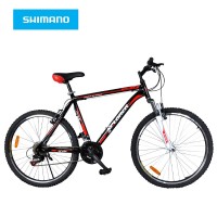 18 brzina, aluminijumski ram 20", dimenzija točka 26", obruč-dvozidni, zadnji menjač-Shimano TZ 50, vila sa amortizerom, V-brake kočnice